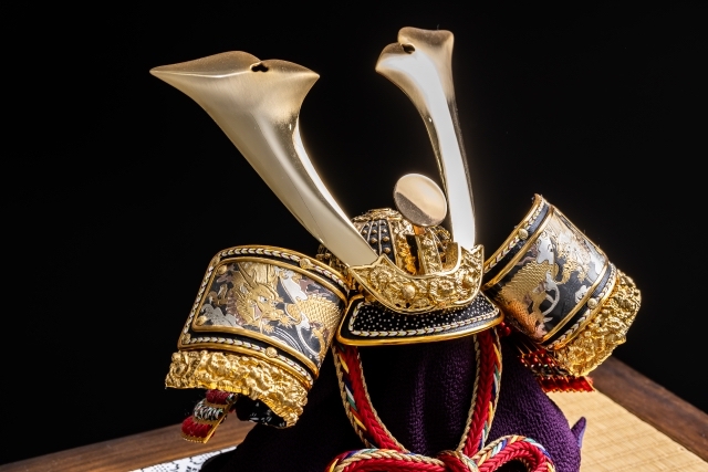「5月5日の端午の節句には、多くの家庭が男児の健やかな成長を願って、ミニチュアの鎧や兜を飾ります」 “On May 5th, during the Boys’ Day festival (Tango no Sekku), many families display miniature armor and helmets to wish for the healthy growth of boys.”